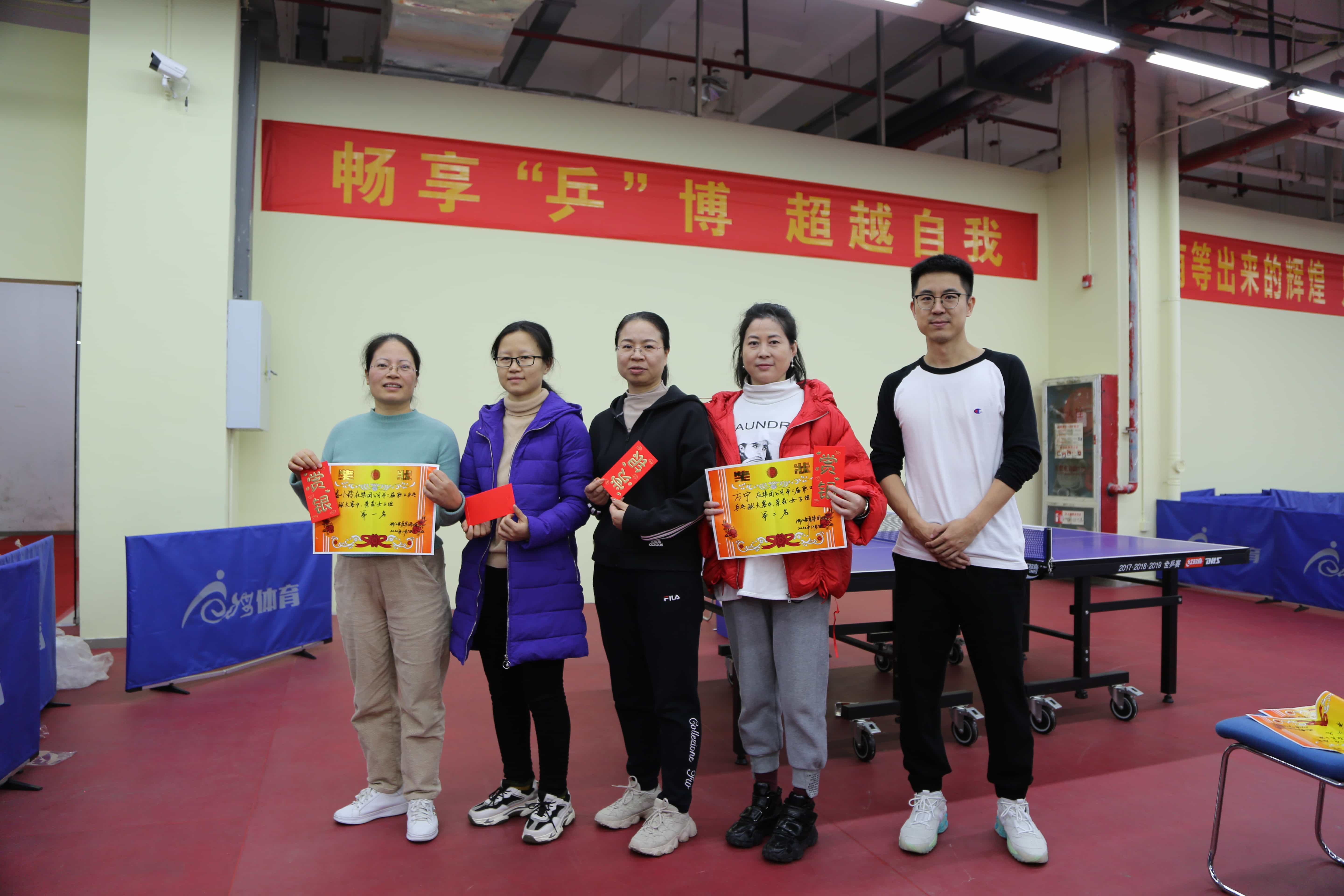 活動(dòng)當(dāng)天,所有人員按時(shí)到達(dá)比賽場(chǎng)地。8點(diǎn)45分,工作人員按照人員名單依次抽取號(hào)碼牌,確定相鄰數(shù)字的參賽人員為首輪的比賽對(duì)象。九點(diǎn)準(zhǔn),比賽人員和裁判人員分別就位,緊張而激烈的比賽正式開始。此次比賽是三局兩勝11分制,通過(guò)多場(chǎng)次的晉級(jí)賽,決出男子組和女子組的前四名,最后再通過(guò)交叉PK制決出冠、亞軍。比賽過(guò)程中,每位運(yùn)動(dòng)員都本著“友誼第一,比賽第二”的心態(tài),輕松上陣,認(rèn)真對(duì)待??此菩⌒〉倪\(yùn)動(dòng),但體力、耐力、專注力,缺一不可。雖然參賽的都是業(yè)余選手,但比賽的激烈程度讓在場(chǎng)的觀眾都為之震驚,對(duì)抗的過(guò)程也非常精彩;多變的發(fā)球、凌厲的進(jìn)攻、完美的防守,每個(gè)瞬間都能引發(fā)現(xiàn)場(chǎng)觀眾的陣陣掌聲。