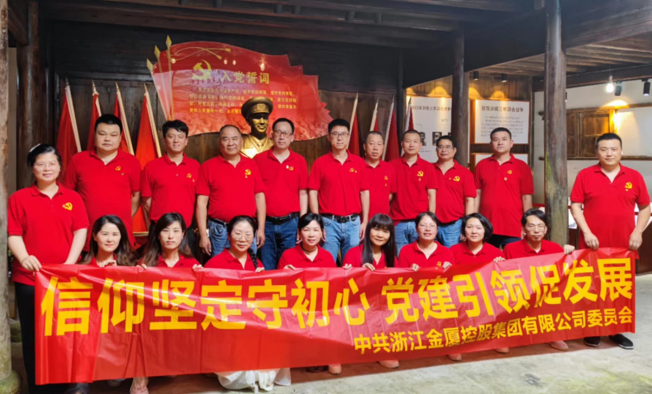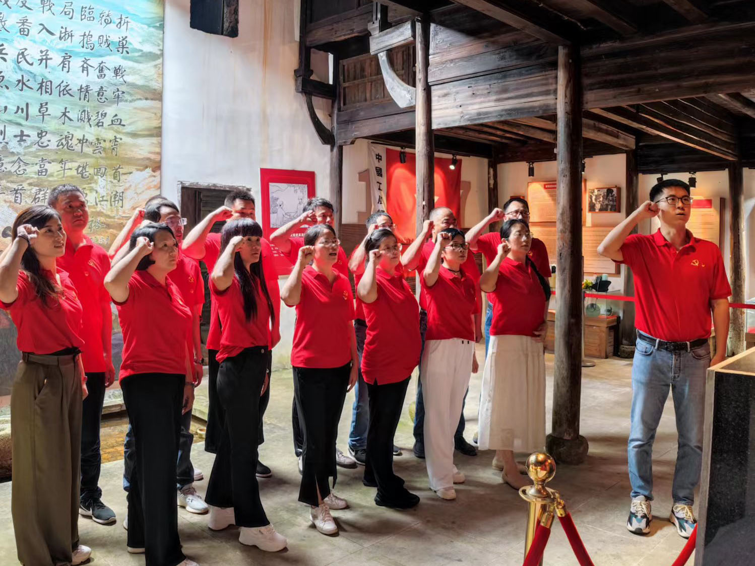 ? ? 金廈黨總支的黨員們?cè)邳h支部書(shū)記傅融的帶領(lǐng)下參觀(guān)了銀坑村粟裕將軍紀(jì)念館,感悟革命初心,重溫入黨誓詞。