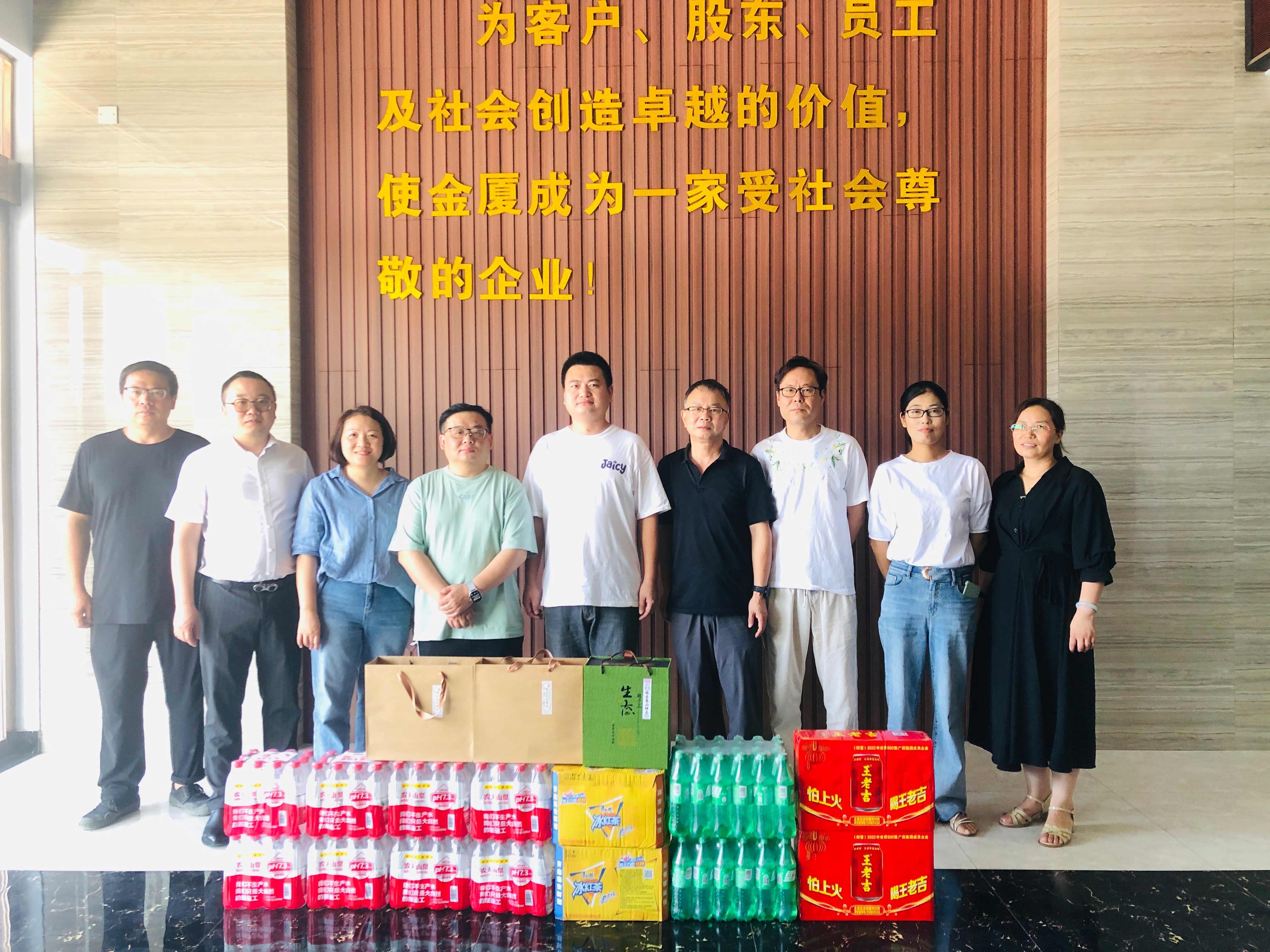 為切實保障一線員工的身體健康,將集團“以人為本”的理念落到實處,持續(xù)推進“幸福金廈”建設,提升員工的凝聚力和向心力,7月10日,金廈集團總裁傅融率集團管理層走訪慰問高溫下堅守崗位、辛勤勞動的一線員工,為他們送去清涼和關懷。